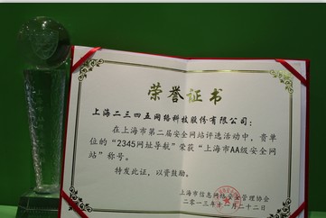 最終評(píng)選出100家上海市安全網(wǎng)站。2345.com以過(guò)硬的技術(shù)實(shí)力與良好的用戶服務(wù),經(jīng)過(guò)層層選拔,最終獲得安全網(wǎng)站的殊榮。