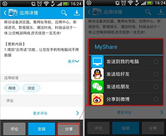 通過2345王牌手機助手您可以把喜歡的應用隨時分享給朋友。
