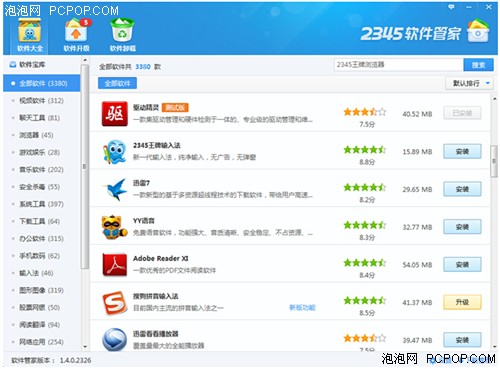 2345軟件管家作為一款專為用戶進行軟件管理的功能性軟件,對PC端用戶的軟件使用提供了極大的方便。對于軟件安裝使用中較為粗心或喜愛偷懶的用戶,2345軟件管家將所有軟件進行了精細地分類,用戶根據個人偏好進行排序,免除了軟件選擇過程中的苦惱;同時,2345軟件管家還能智能判斷軟件的升級情況,需要升級的舊軟件均能一目了然。對于選擇較為謹慎的用戶,2345軟件管家正版軟件的儲備量及無捆綁插件的優勢也具有極大的吸引力。