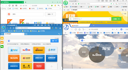 亮點功能。在激烈的市場競爭里,用戶相對較多的這幾款瀏覽器都有自己主打的功能特點:360安全瀏覽器主打上網(wǎng)安全,采用惡意網(wǎng)址攔截技術(shù)自動攔截掛馬、欺詐、網(wǎng)銀仿冒等惡意網(wǎng)址;2345加速瀏覽器新增云安全中心,實施攔截危險網(wǎng)站,有效識別釣魚網(wǎng)站,保護千萬用戶上網(wǎng)安全;UC瀏覽器新版本主打購物積分特色,設(shè)有UC瀏覽器高倍積分專享通道;QQ瀏覽器則因為與QQ的密切關(guān)系,登錄QQ瀏覽器后,可以直接登錄任何QQ網(wǎng)頁服務(wù)。