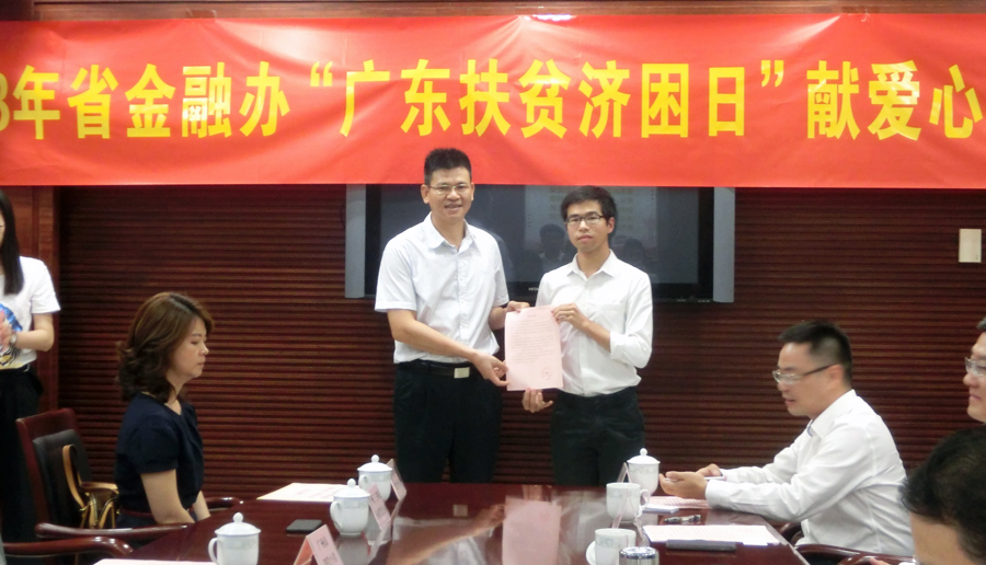 7月2日,廣東省金融辦舉辦“扶貧濟(jì)困日”獻(xiàn)愛心現(xiàn)場募捐活動,廣州小額貸款公司協(xié)會會員單位廣州二三四五互聯(lián)網(wǎng)小額貸款有限公司、廣州市衡譽(yù)小額貸款股份有限公司、廣東省粵科科技小額貸款股份有限公司、佛山禪城中盈盛達(dá)小額貸款有限公司等小貸金融公司與廣東省銀行、保險、證券等主要金融行業(yè)的企業(yè)代表參加本次活動。其中,二三四五集團(tuán)旗下廣州二三四五互聯(lián)網(wǎng)小額貸款有限公司在本次活動中捐款人民幣8萬元,為本次活動捐款金額最高的會員單位。