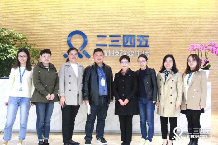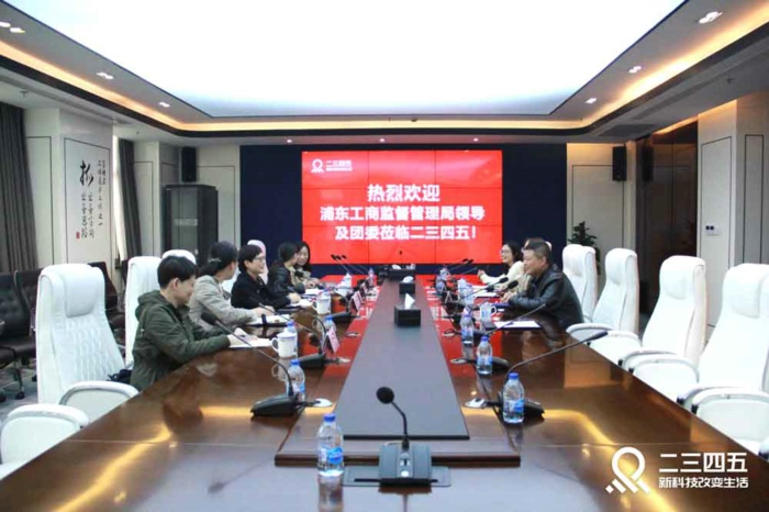 2019年11月22日,十九大代表、上海浦東市場監管局注冊許可分局黨總支副書記徐敏,注冊科三科科長王連鳳,團支部書記蔡文灝等一行蒞臨上海二三四五網絡控股集團股份有限公司(以下簡稱“二三四五”,002195.SZ)總部考察交流、指導工作,二三四五集團總裁辦主任康峰、二三四五團支部書記王思朝等相關負責人陪同座談。