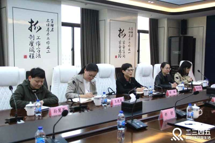 二三四五集團團支部書記王思朝向一行領導匯報了二三四五團支部建設工作。二三四五員工以29歲左右的青年為主,充滿活力。在二三四五集團黨支部的引領和熏陶下,二三四五于今年9月份成立了團支部。作為二三四五黨支部的新生力量,團支部定將在黨支部的領導下開展工作,緊密圍繞黨支部的中心任務開展各項活動,積極發揮黨建帶團建的“五帶”作用。