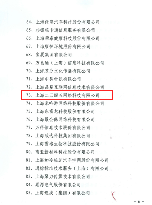 2019年12月30日,上海市商務(wù)委發(fā)布關(guān)于《2019年度上海市民營企業(yè)總部名單的通知》(下稱《通知》),上海二三四五網(wǎng)絡(luò)科技有限公司榮譽上榜。