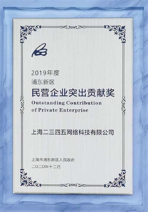 (二三四五榮獲2019年度浦東新區(qū)民營企業(yè)突出貢獻(xiàn)獎(jiǎng)20強(qiáng))