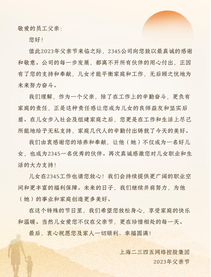 今年的父親節,2345為每一位員工準備了特別的禮物,讓伙伴們能夠用禮物表達對父親的感激之情。